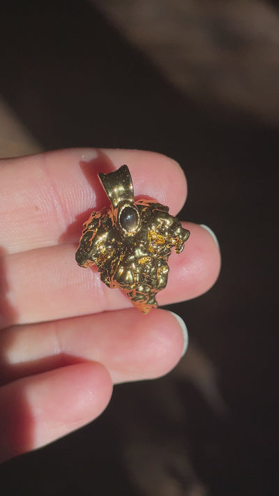 Each piece is completely one-of-a-kind, featuring specific strains and natural gemstones. The plant is carefully coated in metal and a thick layer of 24k gold.