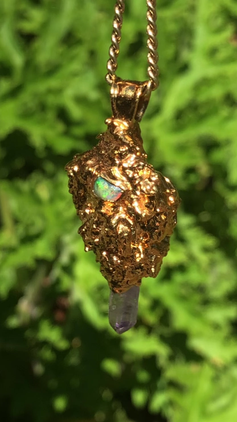 24k Sour Bud with Ethiopian Opal and Amethyst
